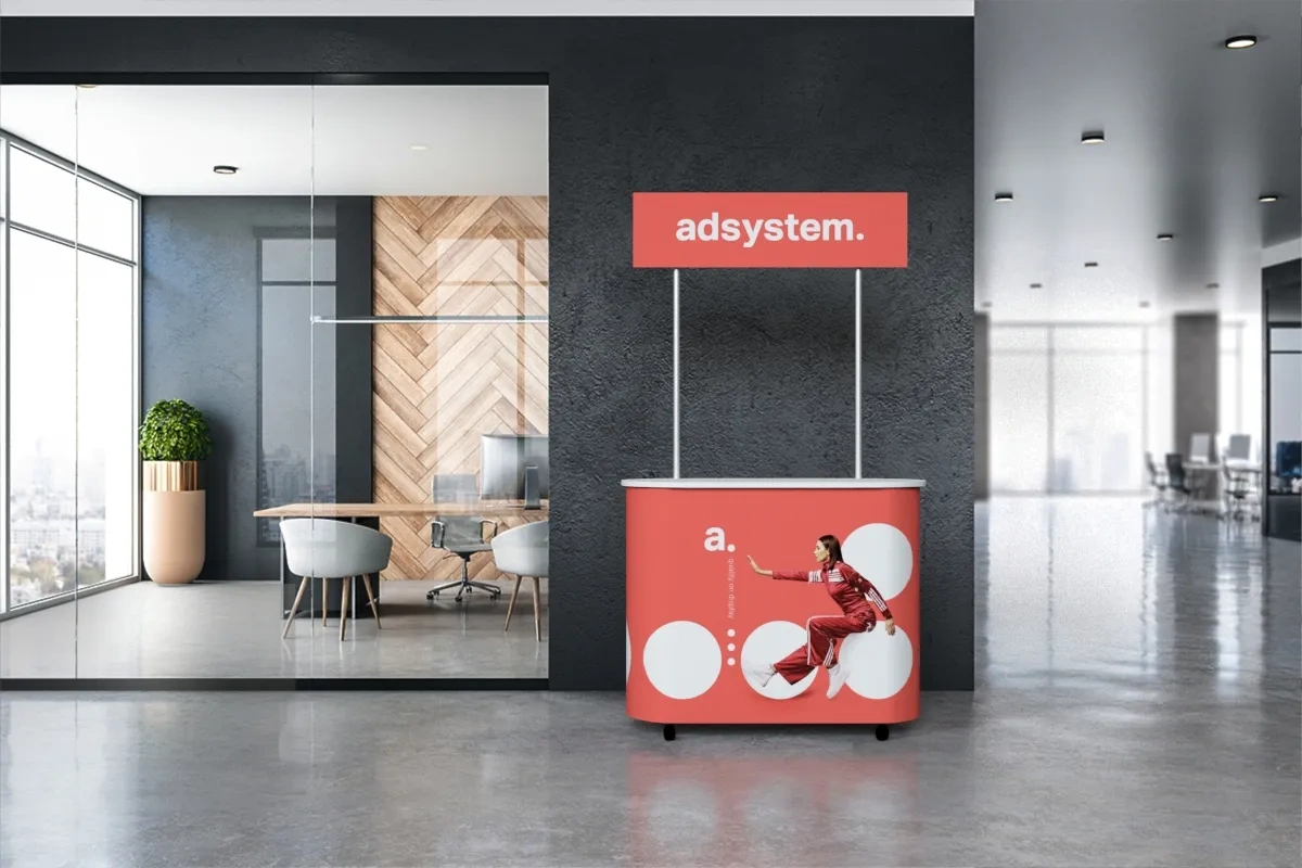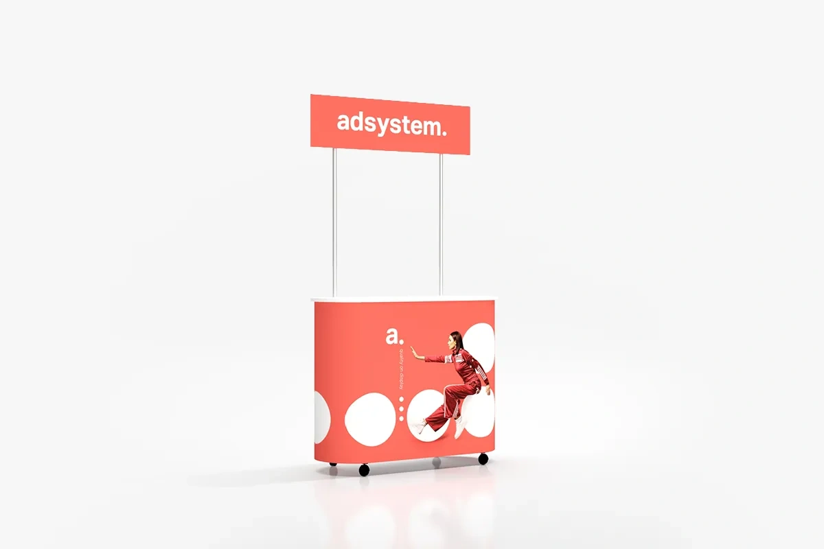 adBox Elypse è uno stand promozionale moderno. Grazie alla sua struttura su ruote e al montaggio rapido, è la soluzione ideale per degustazioni e attività promozionali in negozi ed eventi.
