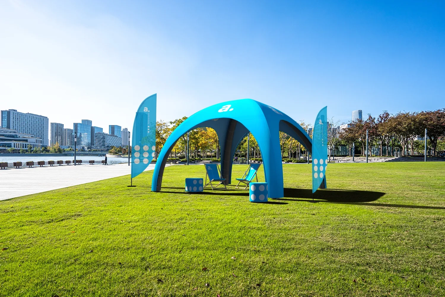 adFlag Standard è una bandiera pubblicitaria che puoi utilizzare per segnalare e promuovere il tuo evento. Sul tessuto stampato appariranno le tue grafiche personalizzate, che attireranno l'attenzione del pubblico e li attireranno al tuo stand. Il set presentato qui include la bandiera con il logo, una stampa tessile e un'asta.