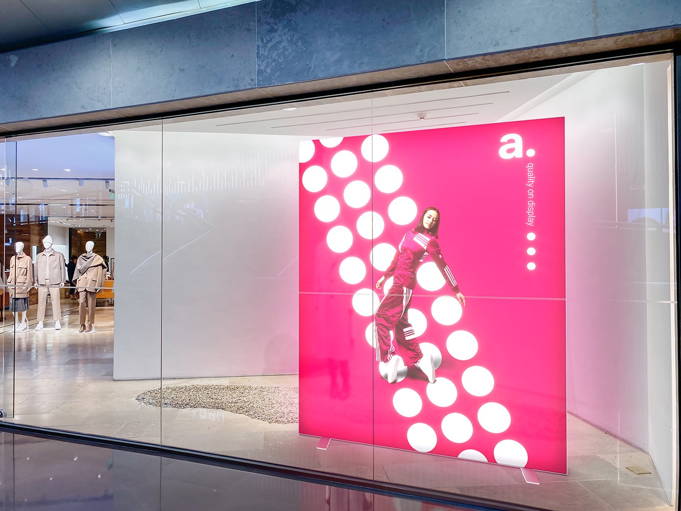 Product advertising: The extensive advertising space provided by the adFrame LMD is perfect for presenting products in their realistic sizes. Therefore, the double-sided LED panel is suitable for use in furniture stores or car showrooms.