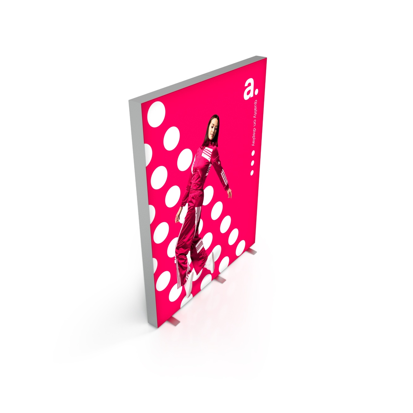 La struttura dello stand LMD è un sistema espositivo illuminato e bifacciale che metterà in evidenza il tuo marchio e aiuterà ad organizzare un efficace spazio di presentazione. Questo tipo di stand per fiere è composto da cassonetti tagliati su misura. All'interno sono montati dei LED che illuminano uniformemente le stampe tessili con le tue grafiche personalizzate. Il montaggio dello stand espositivo avviene tramite chiavi a brugola.