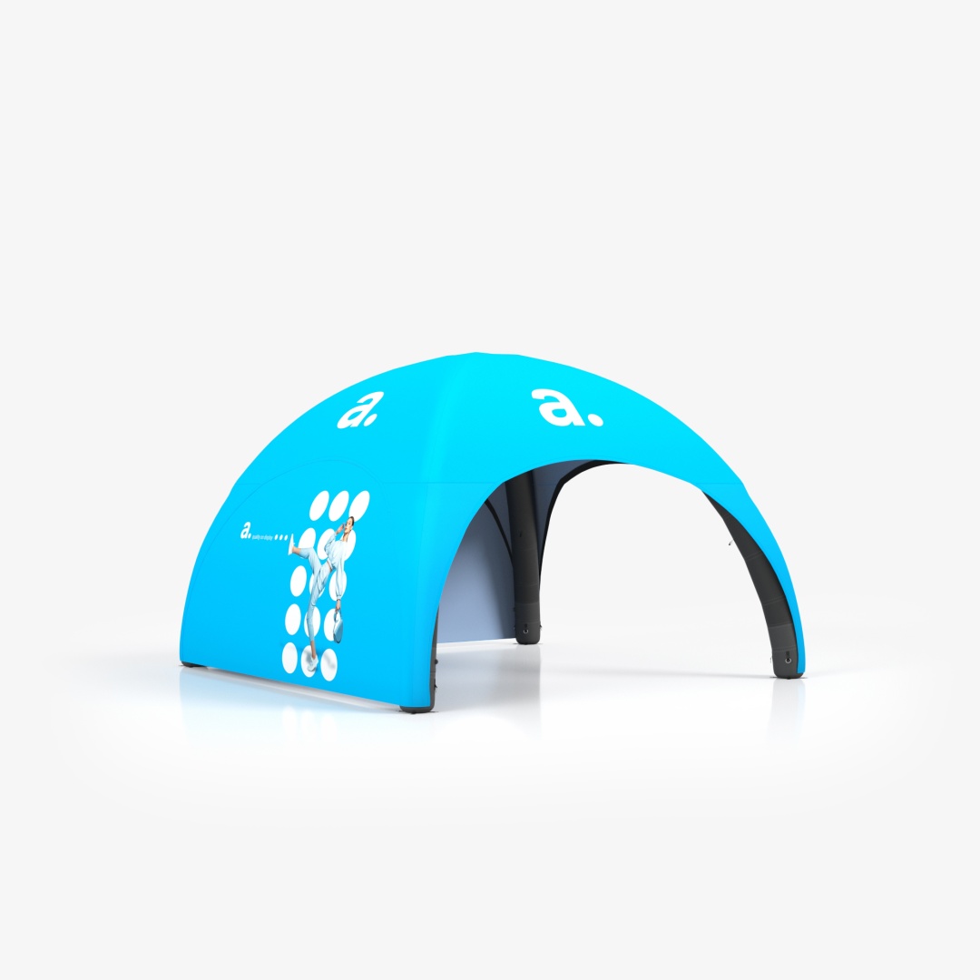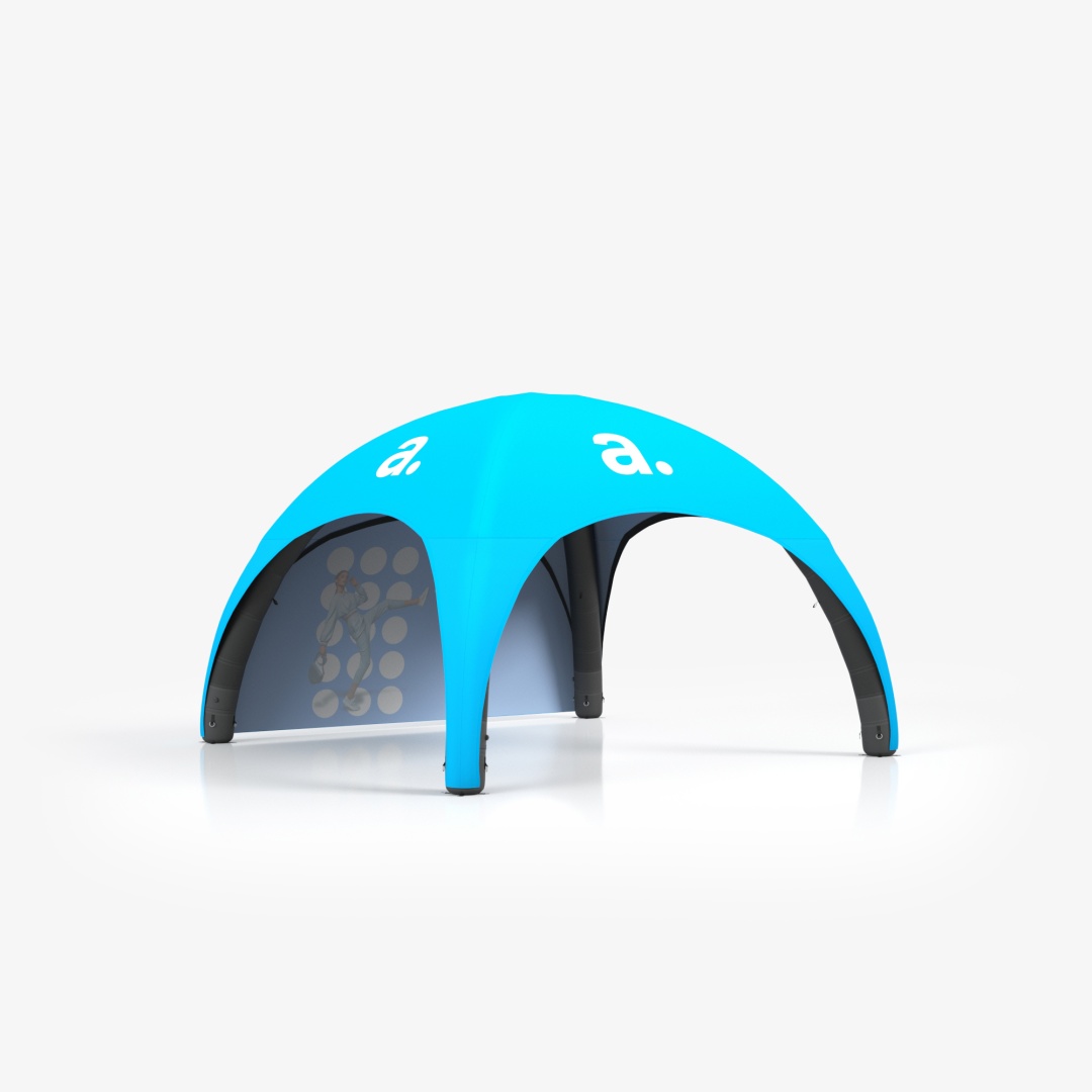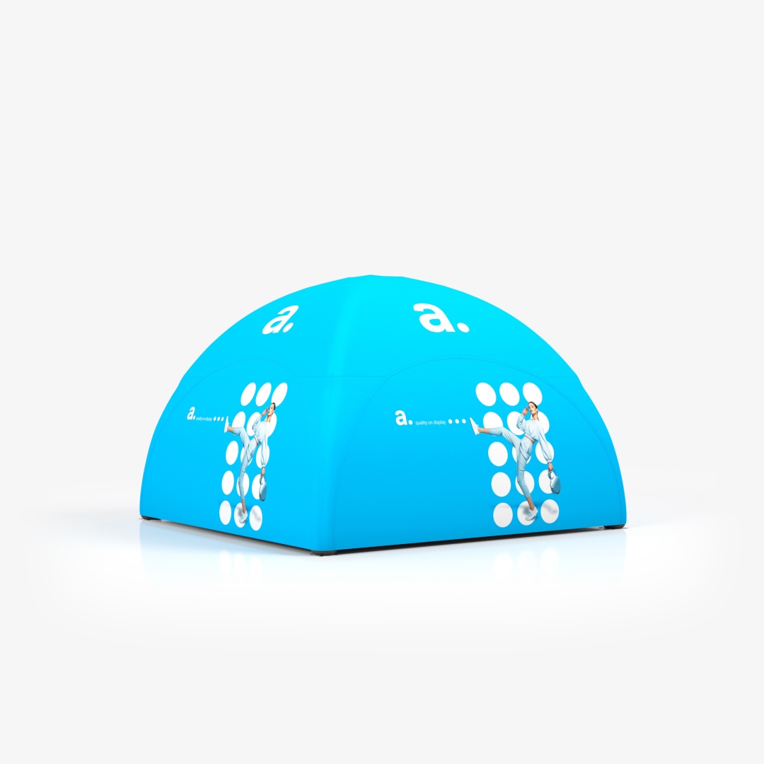 La adTent Air Premium 5x5 è una tenda gonfiabile spaziosa che protegge da sole, pioggia e vento e allo stesso tempo funge da efficace supporto pubblicitario. Il tetto e le pareti possono essere stampati con le tue grafiche e loghi, attirando l’attenzione dei partecipanti e rendendo unico il tuo stand. La struttura si basa su un telaio a pressione costante: una volta gonfiata, l’aria resta nei palloni per tutta la durata dell’evento senza necessità di rabbocchi.