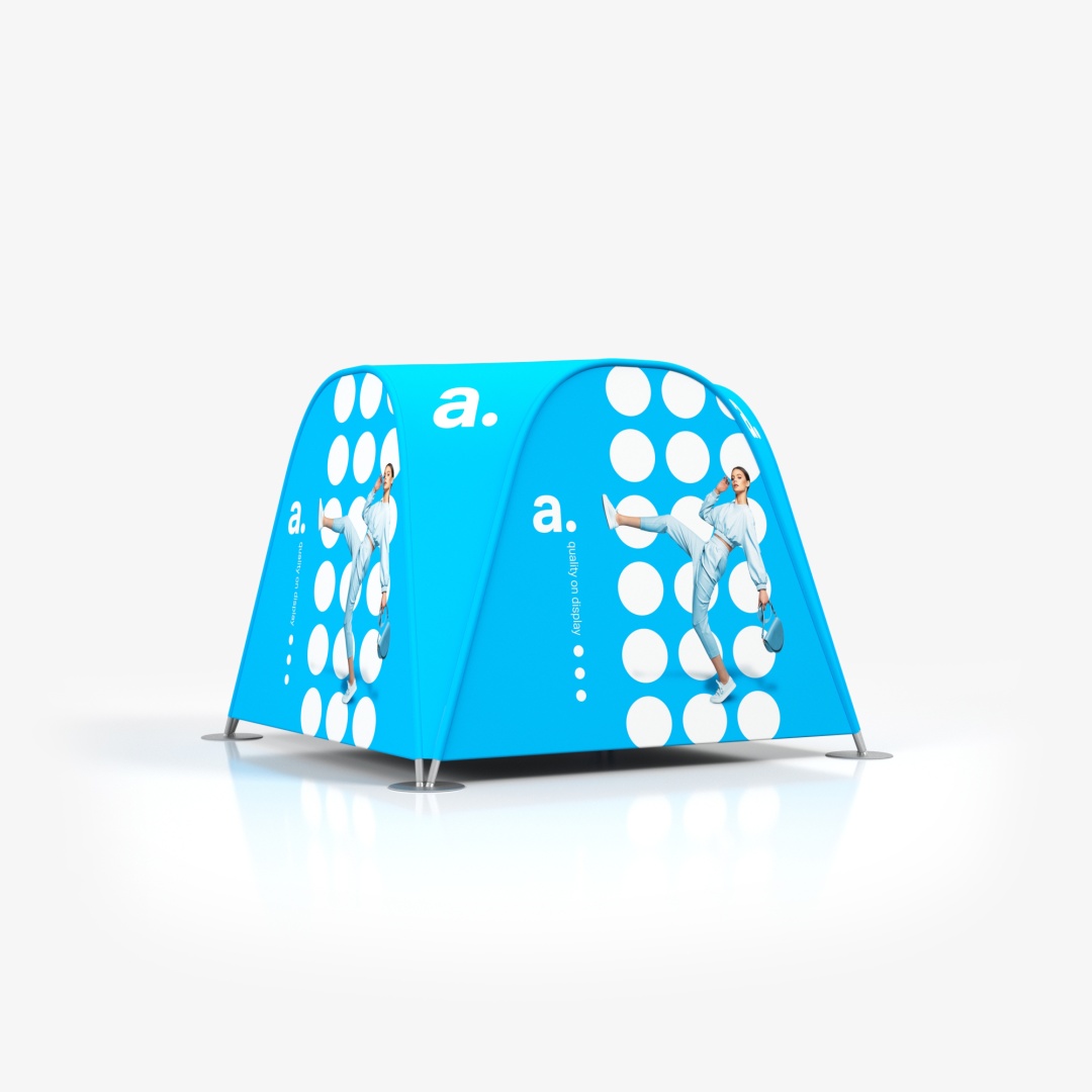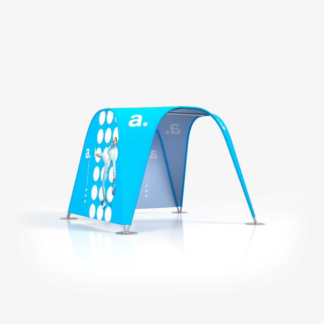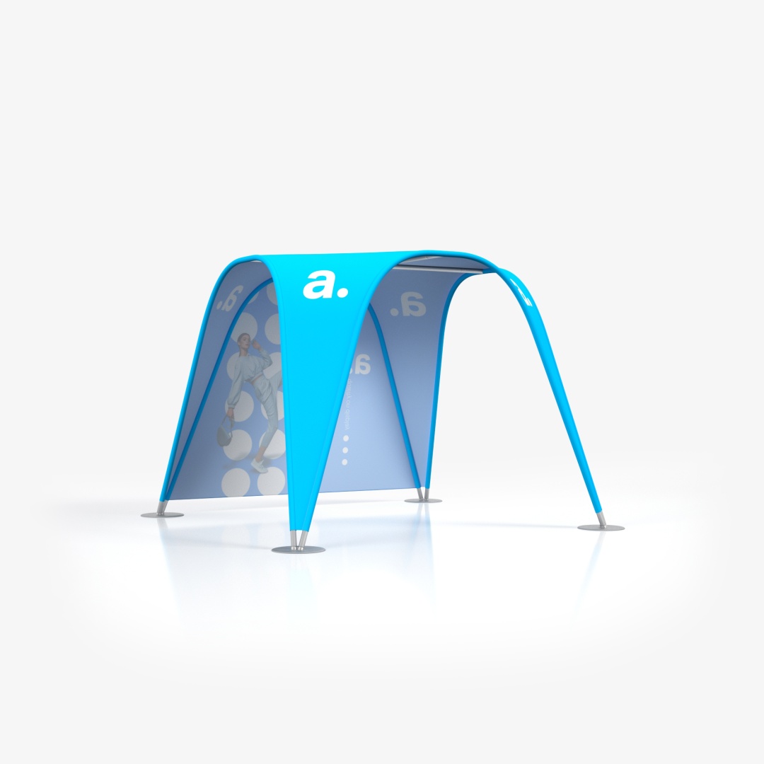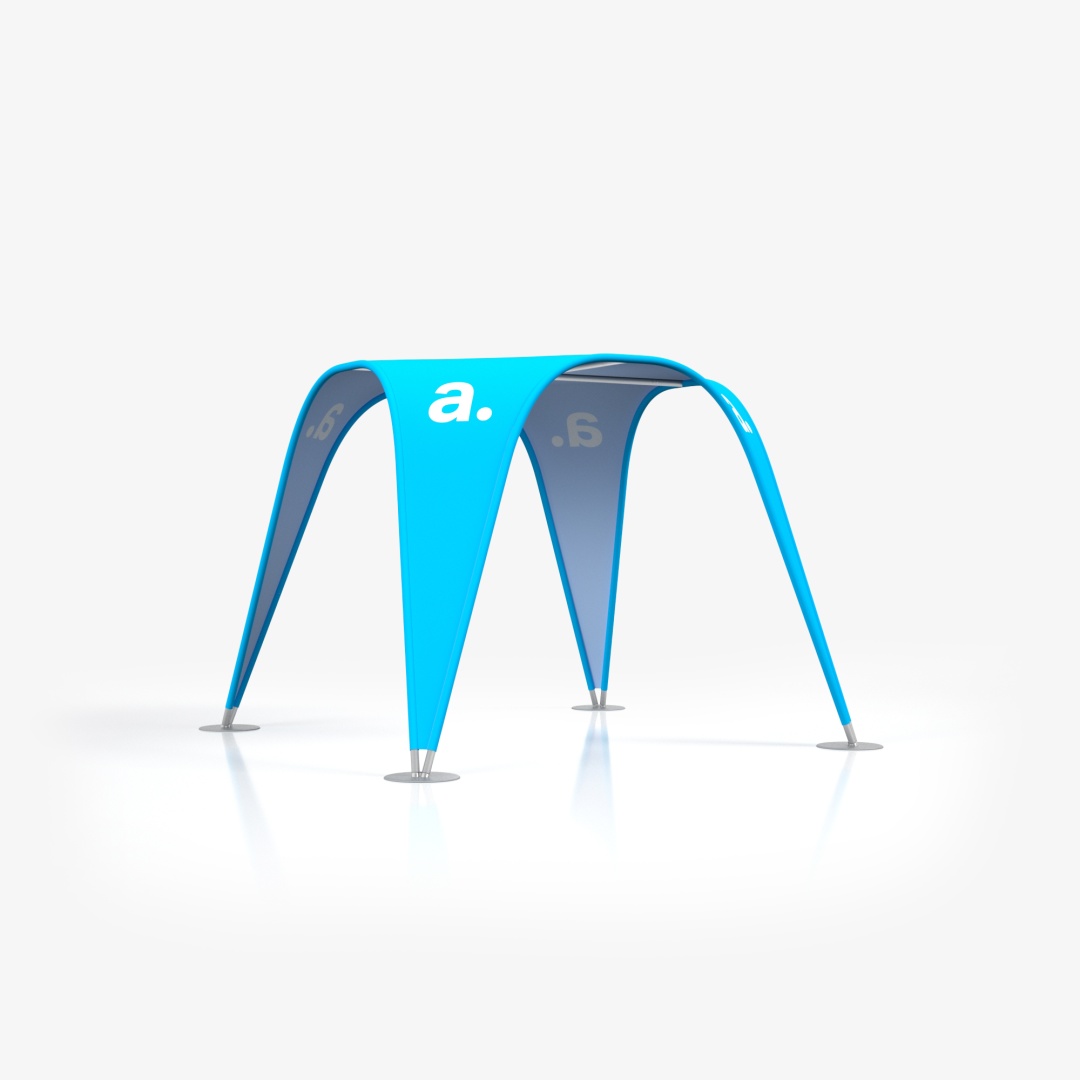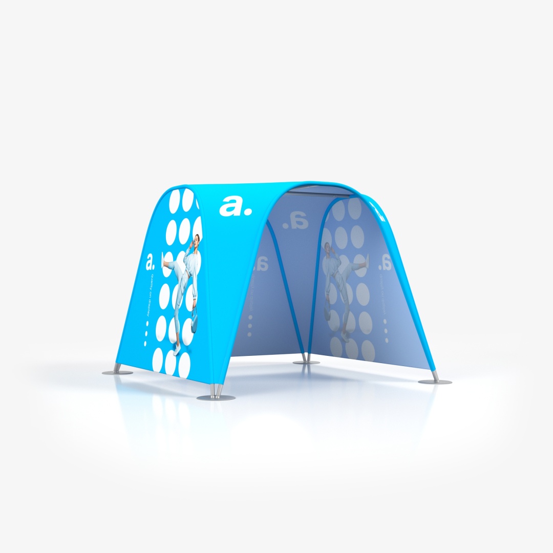 La tenda tubolare adTent Vario è un prodotto espositivo che ti permette di allestire uno stand comodo e pratico. È perfetta sia per eventi all'aperto che per l'uso in interni, poiché il tessuto del tetto e delle pareti è impregnato e certificato ignifugo. La tenda espositiva presentata qui è anche un efficace mezzo pubblicitario, poiché possiamo applicare le tue grafiche personalizzate sulle stampe tessili. La struttura della tenda si basa su un telaio tubolare che si collega tramite chiusure a scatto.