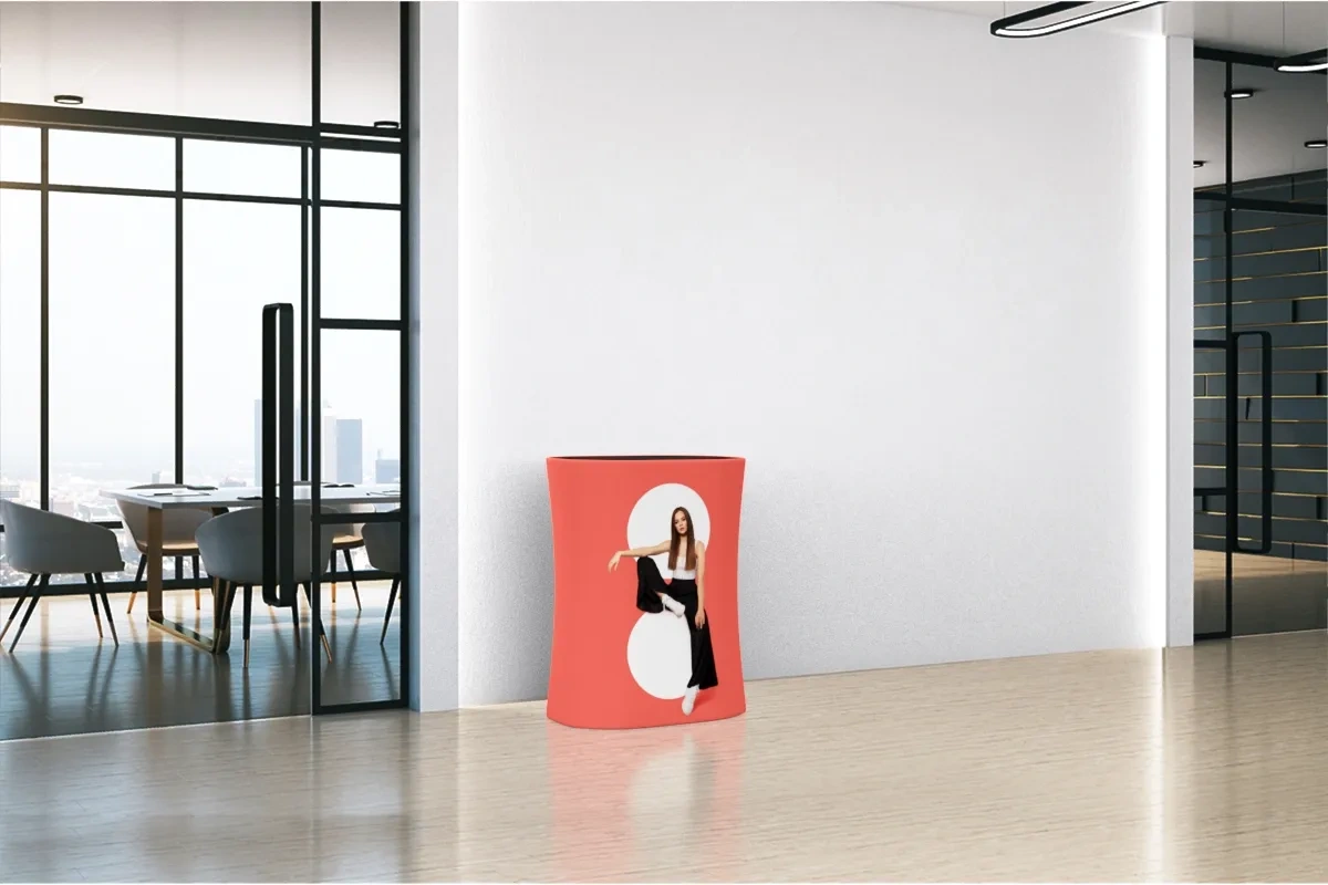 Conferenze: Durante le conferenze, adTribune Big Quick offre uno stand estetico e funzionale. Le stampe intercambiabili consentono di adattare facilmente la grafica a diversi temi e campagne, aumentando la versatilità del prodotto.