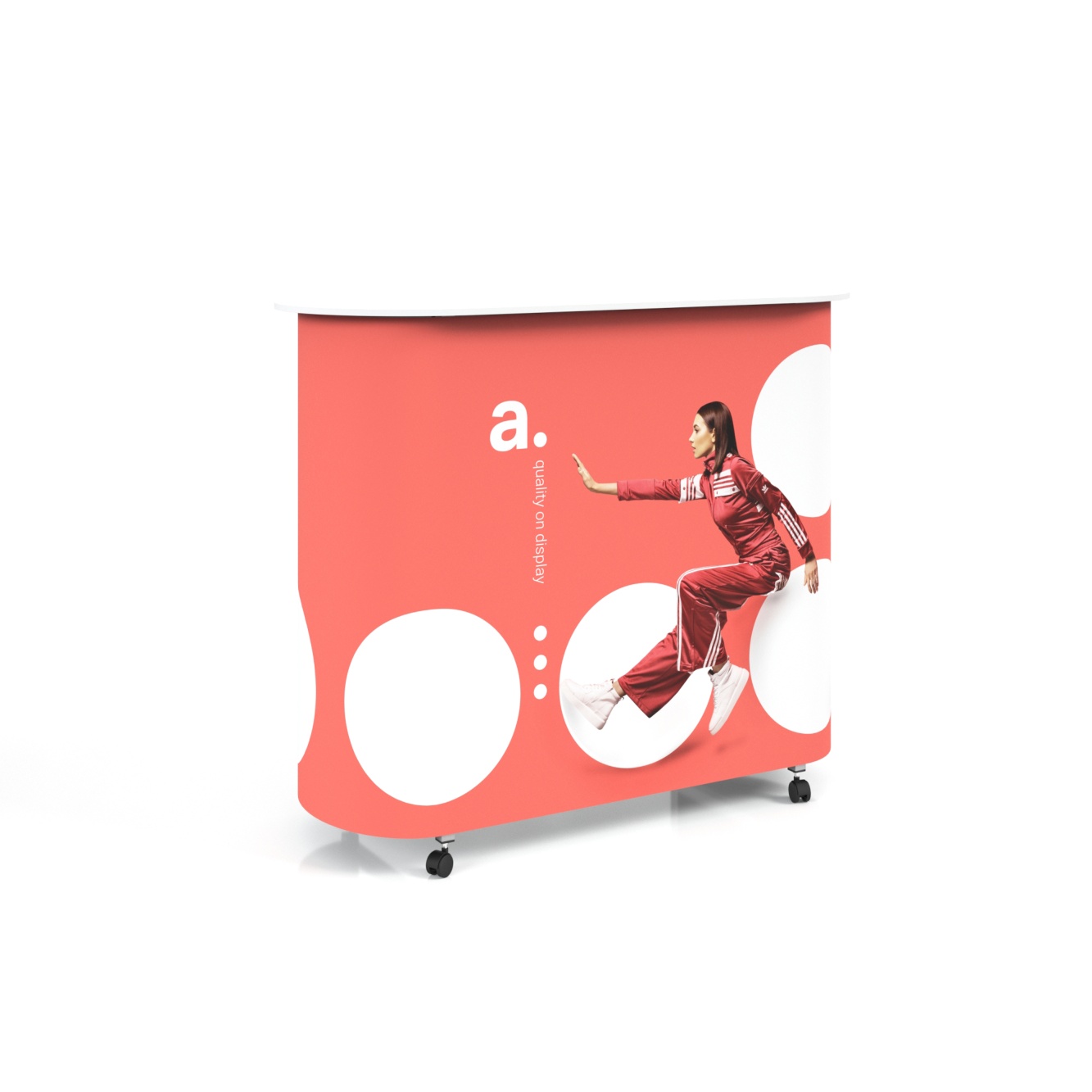 Promozioni in negozi o gallerie: il banco espositivo mobile è un sistema riutilizzabile che ti permette di adattare facilmente laspetto dello stand alle campagne promozionali attuali.