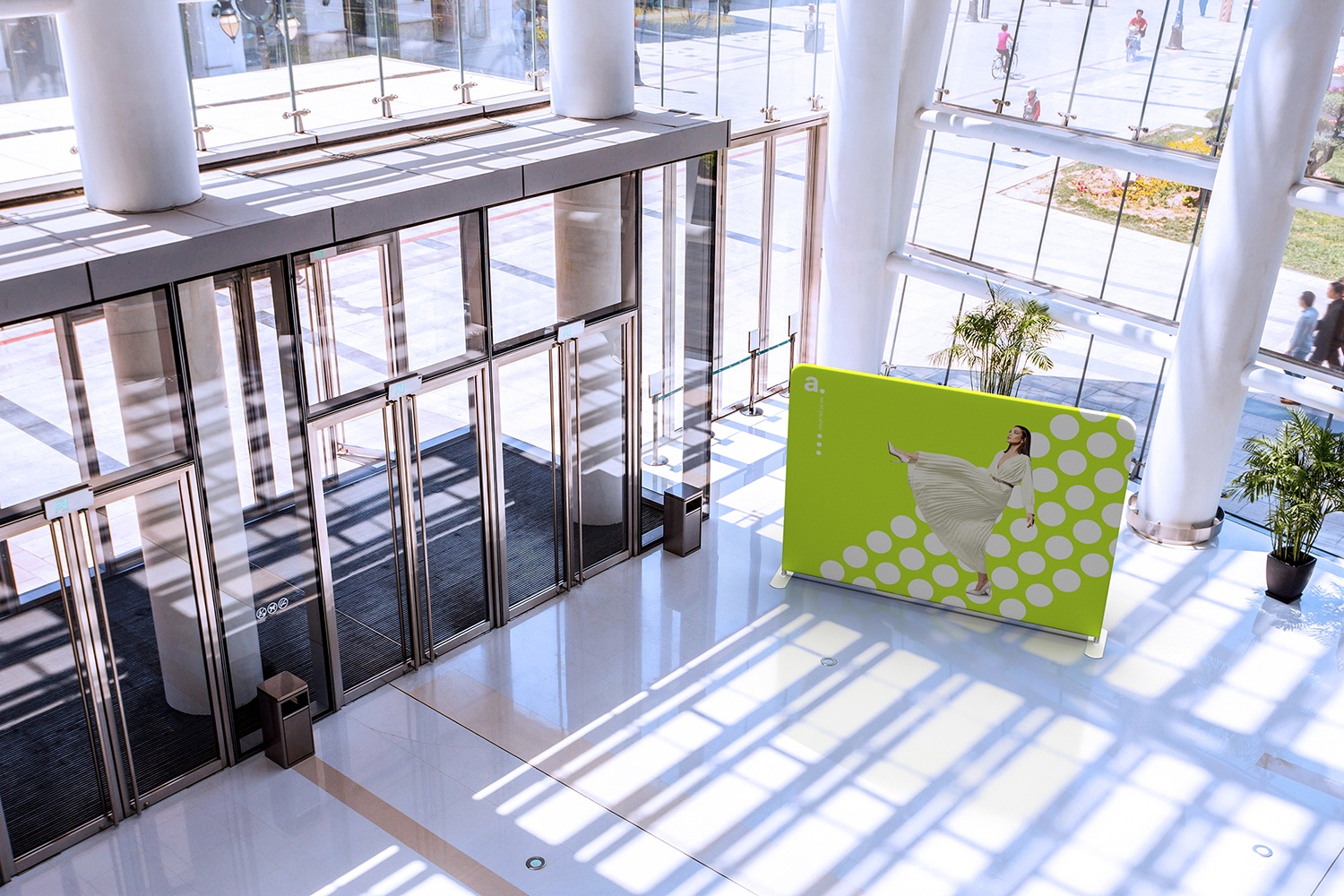 La parete adWall Vario Dritta Premium è uno strumento di marketing universale che trova molte applicazioni nella promozione del tuo marchio. Il prodotto può essere utilizzato come parete fotografica o elemento dello stand fieristico, ma può essere usato con successo anche nellarredamento di un ufficio o di un locale commerciale. La sua struttura è leggera e resistente – il diametro del tubo è di 43 mm.