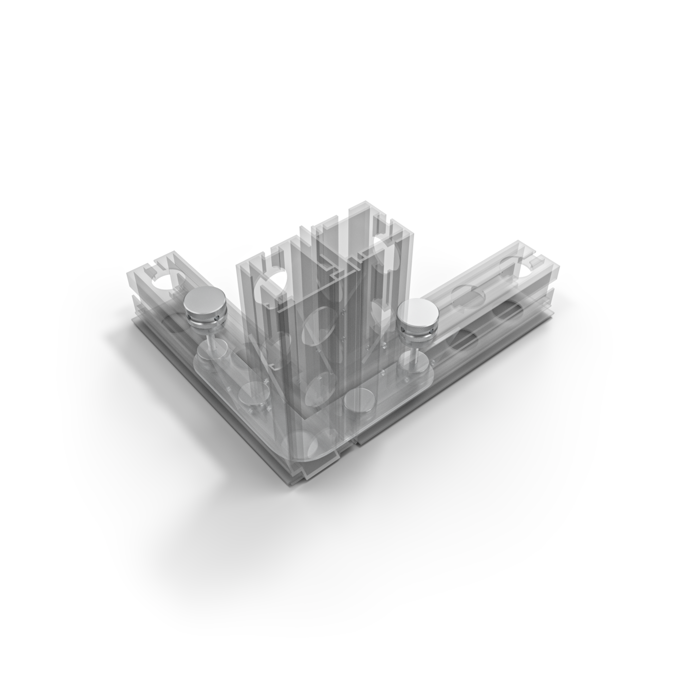 Connettori a L mFrame sono componenti che permettono il collegamento rapido e stabile dei telai del sistema mFrame ad un angolo di 90 gradi. Grazie alla lavorazione precisa, garantiscono una connessione solida e duratura, contribuendo alla stabilità dellintera struttura.