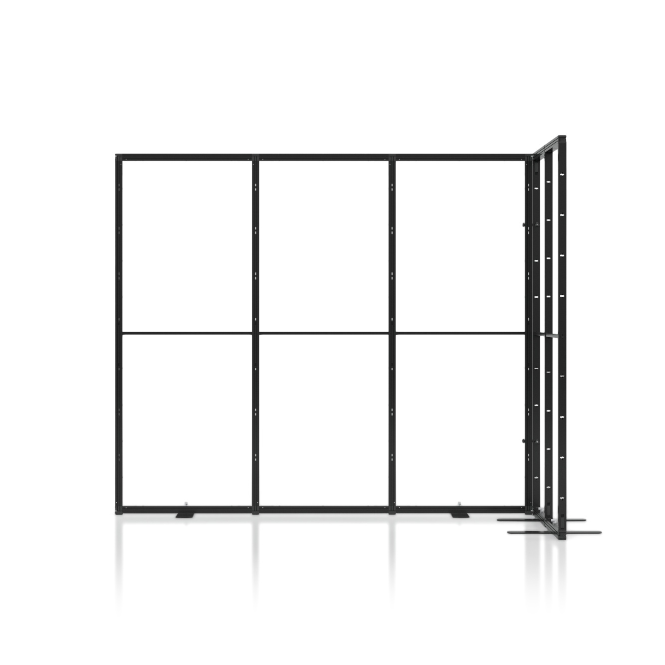La struttura espositiva Multiframe è un sistema espositivo portatile che ti permette di preparare un comodo spazio di presentazione alle fiere. Questo tipo di stand è composto da moduli di dimensioni 100x250 cm e 50x250 cm. Su questi potrai posizionare stampe tessili con le tue grafiche personalizzate. Grazie a queste, la struttura espositiva metterà in risalto il tuo marchio, attirerà l'attenzione dei visitatori e migliorerà l'efficacia della promozione. Le versioni con ufficio sono dotate di porte a sistema chiudibili a chiave.