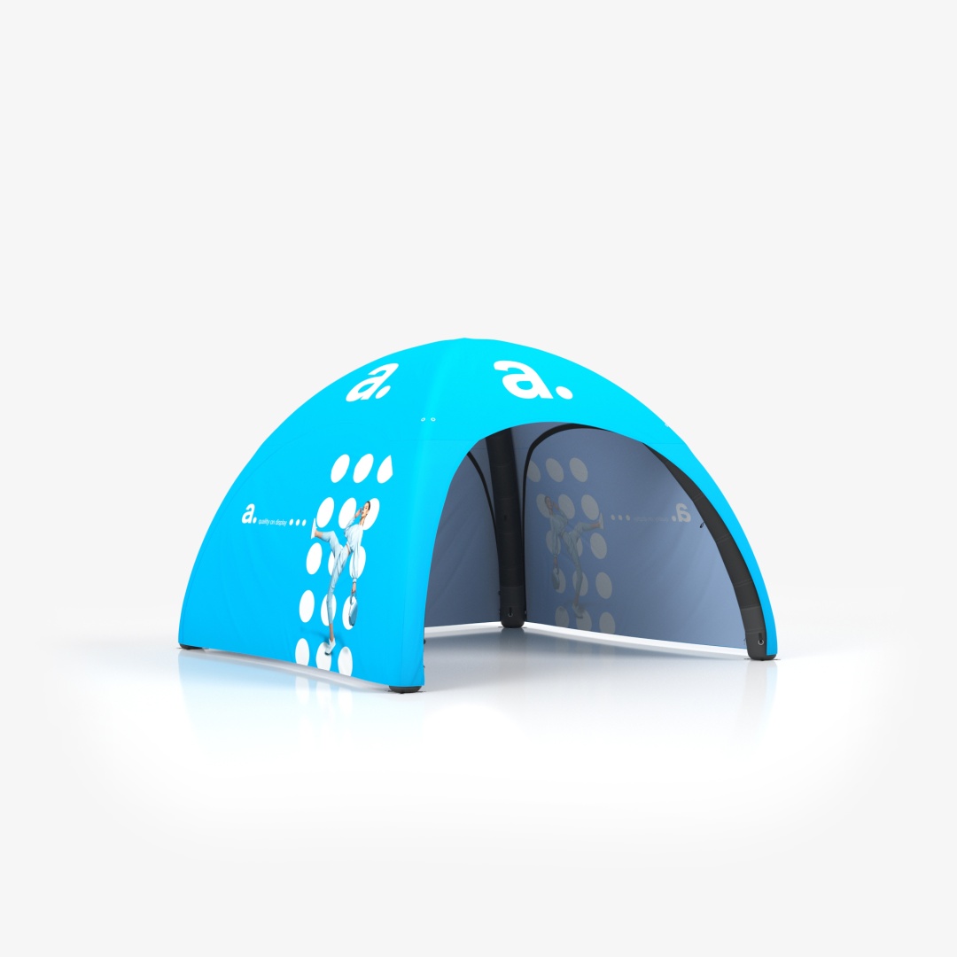 La tenda gonfiabile adTent Air Premium non è solo una soluzione per la protezione dalle condizioni meteorologiche avverse, ma anche un efficace strumento pubblicitario. Il materiale che riveste la struttura può essere personalizzato con le grafiche aziendali, trasformando la tenda pubblicitaria in un elemento accattivante che cattura l’attenzione del pubblico e attira visitatori al tuo stand. Questa tenda gonfiabile è costruita su una struttura a pressione costante, mantenendo livelli d’aria stabili grazie a speciali valvole.